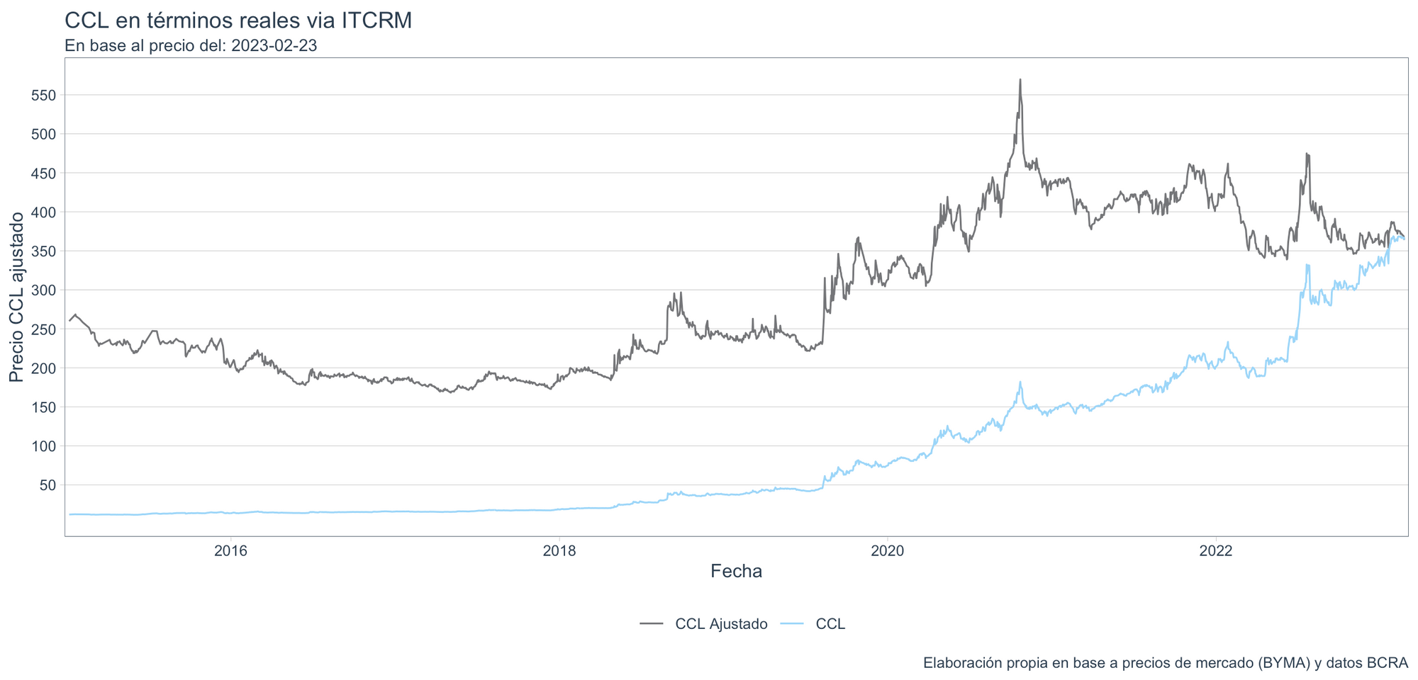 Dicho esto, es que resultaría más adecuado ver el valor del CCL en perspectiva expresándolo en valores constantes. Esto es, reexpresando el valor histórico del CCL en términos actuales.
