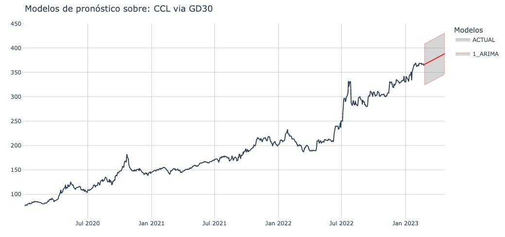 Esta finalización de otro período de lateralización es consistente con lo que anticipáramos en el informe anterior con nuestro Modelo de pronóstico de CCL que incluímos nuevamente aquí: