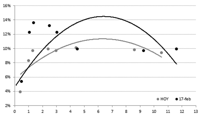 ¿De cuánto estamos hablando? Nada mas ni menos que de $ 7.7 BB venciendo entre ahora y junio. De ese monto, aproximadamente la mitad está en manos públicas, 20% lo poseen los bancos en sus balances y otro tanto en manos de Fondos Comunes y Compañías de Seguros. En una cuenta rápida de almacenero, y según trascendidos, el piso de un eventual canje podría ser 60% (suponemos participación full de organismos estatales y los bancos yendo con la mitad de sus tenencias. FCIs por mandato y duration de la cartera quedarían afuera, al menos en su mayor parte, mientras que Aseguradoras no queda claro su incentivo. Resto dependería de las tesorerías corporativas y algo en Fondos del extranjero. Con todo, 60% parece un número razonable para empezar a pensar, y sin dudas un alivio para encarar los próximos meses en materia de financiamiento.