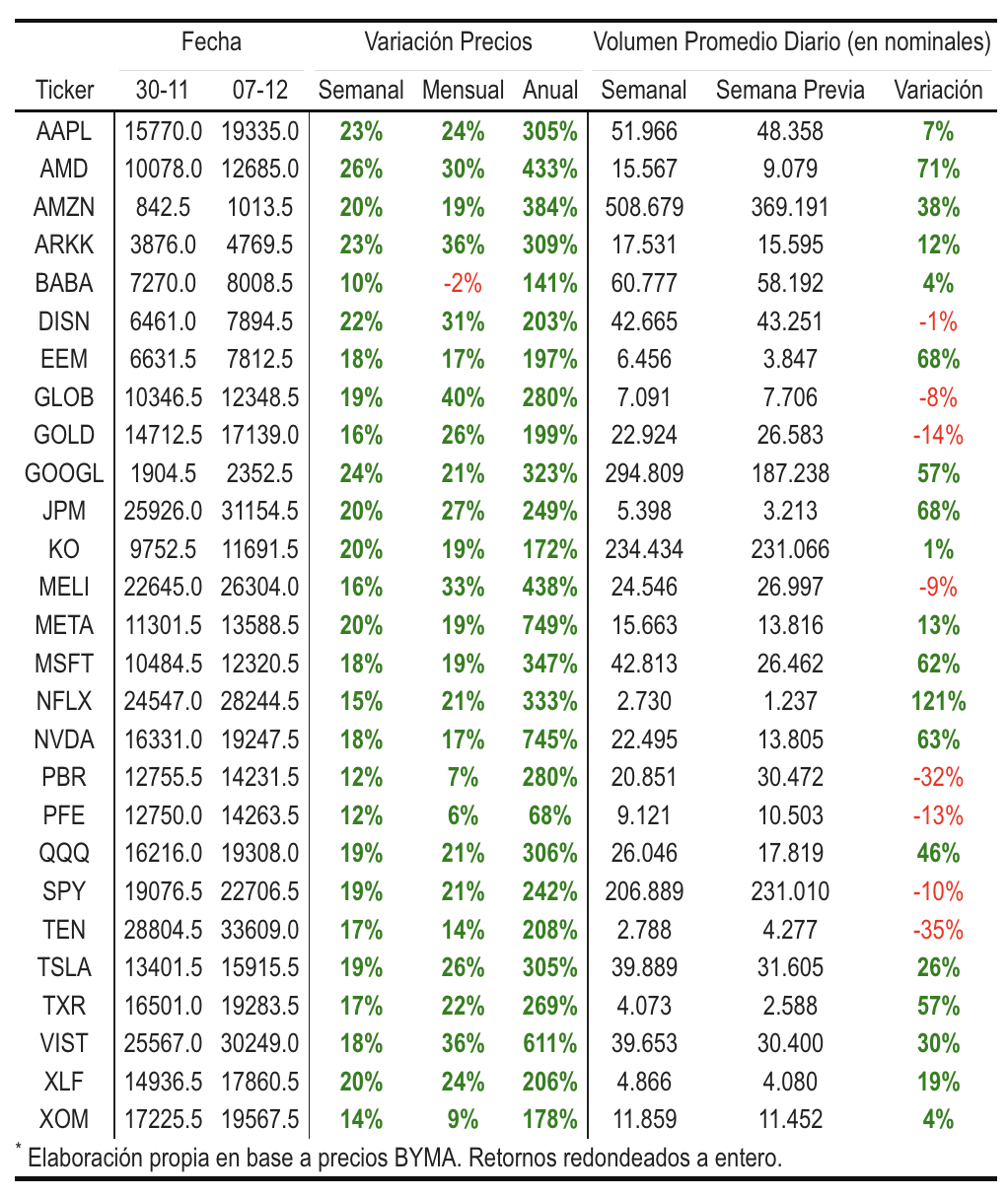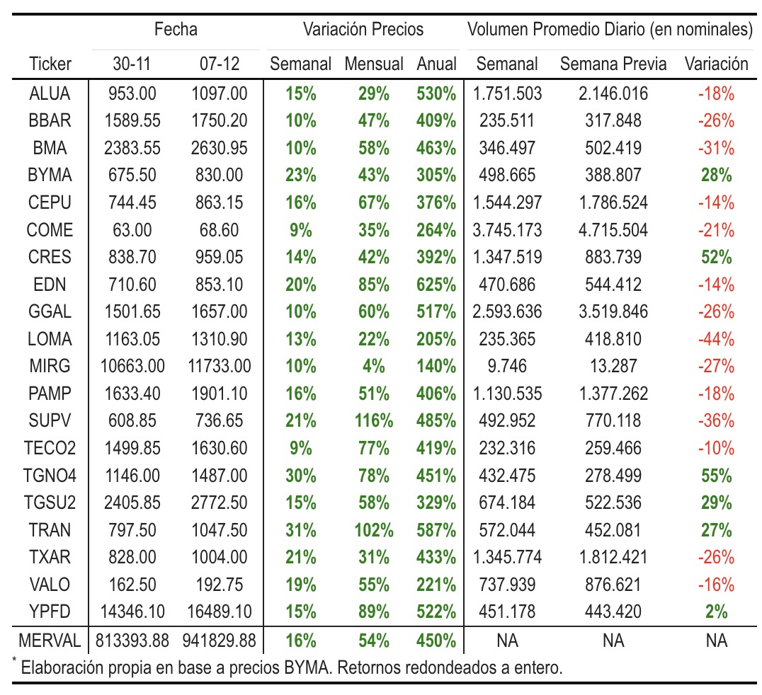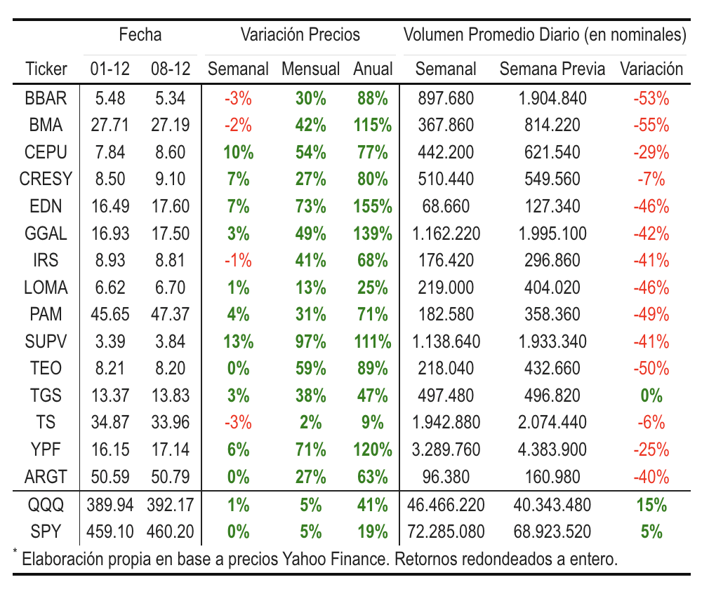 A continuación cuadros con componentes del Merval, CEDEARs y ADRs.