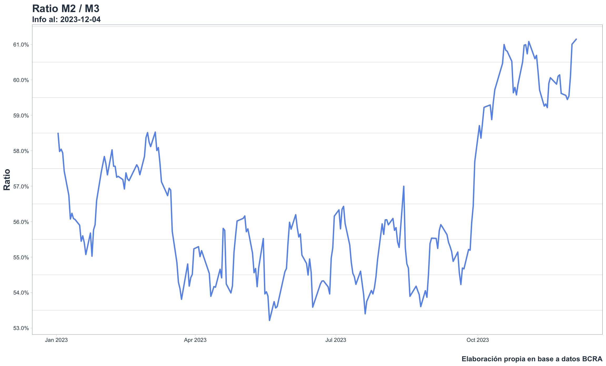 Bueno, puede ser que el gráfico de ratio indique una caída, pero este otro de stocks, no. Esto es porque también incluye el stock de PASES (pasivos en este caso)